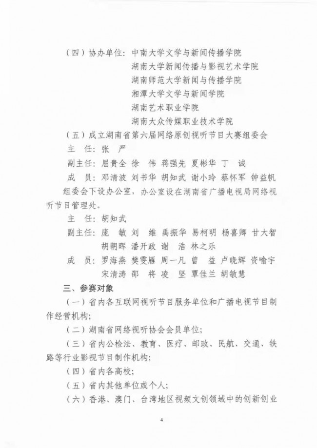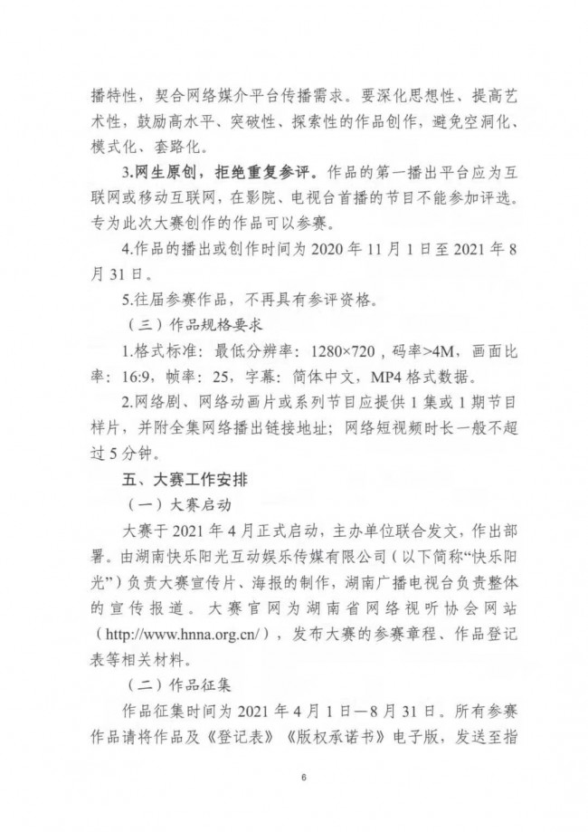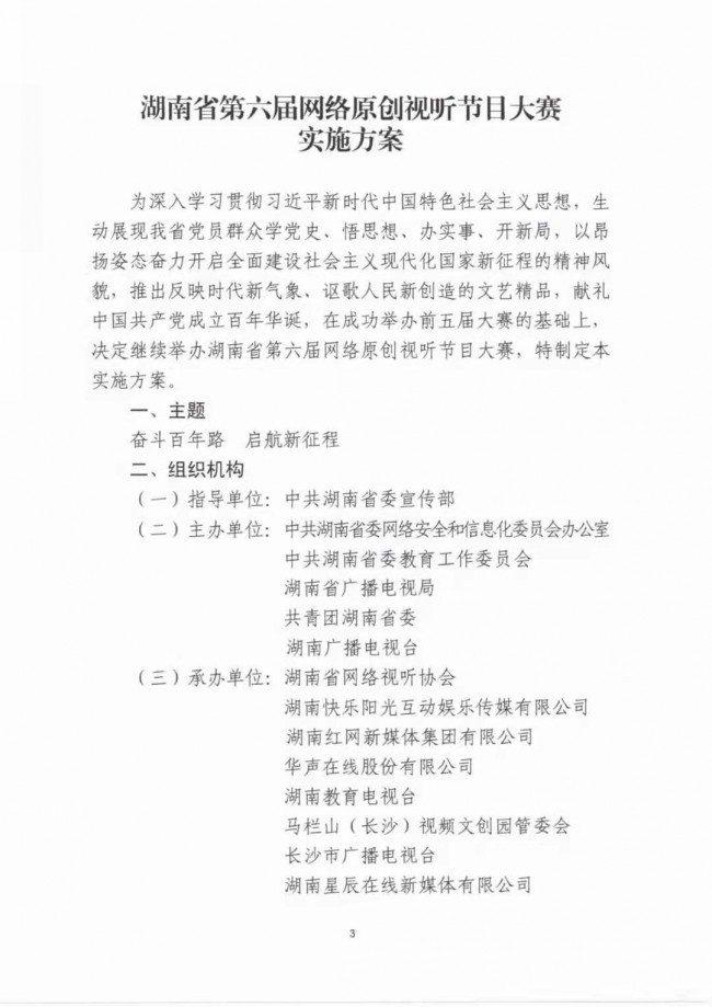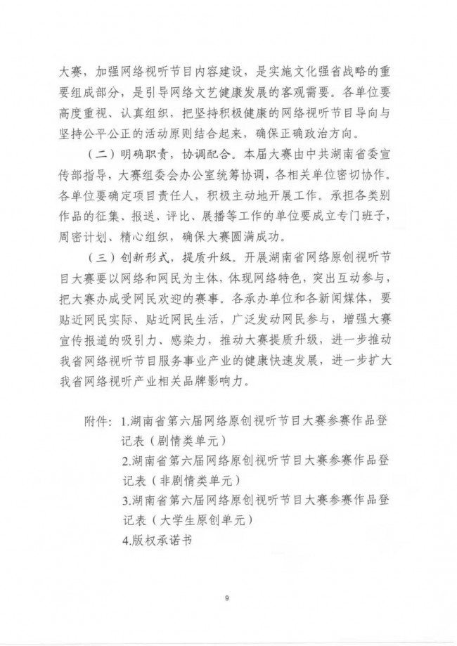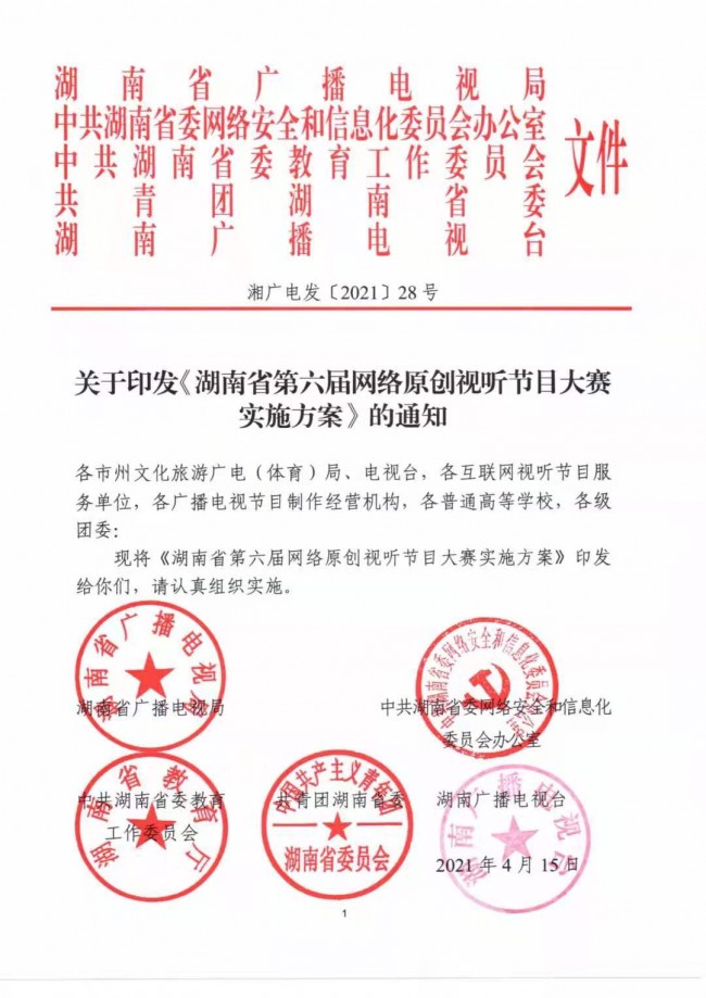 關(guān)于印發(fā)《湖南省第六屆網(wǎng)絡(luò)原創(chuàng)視聽節(jié)目大賽實(shí)施方案》的通知