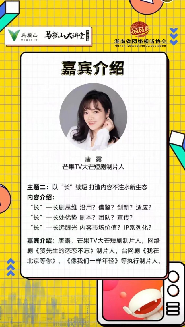 主辦單位:湖南省網(wǎng)絡(luò)視聽(tīng)協(xié)會(huì)、馬欄山視頻文創(chuàng)產(chǎn)業(yè)園管委會(huì)聯(lián)合主辦本期大講堂分享會(huì)