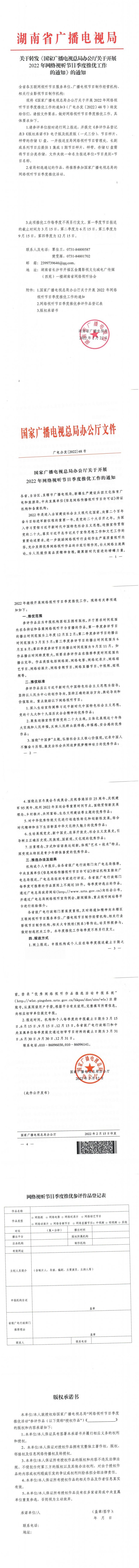 關(guān)于轉(zhuǎn)發(fā)《國家廣播電視總局辦公廳關(guān)于開展2022年網(wǎng)絡(luò)視聽節(jié)目季度推優(yōu)工作的通知》的通知