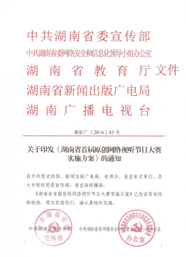 關(guān)于印發(fā)《湖南省首屆原創(chuàng)網(wǎng)絡(luò)視聽(tīng)節(jié)目大賽實(shí)施方案》的通知