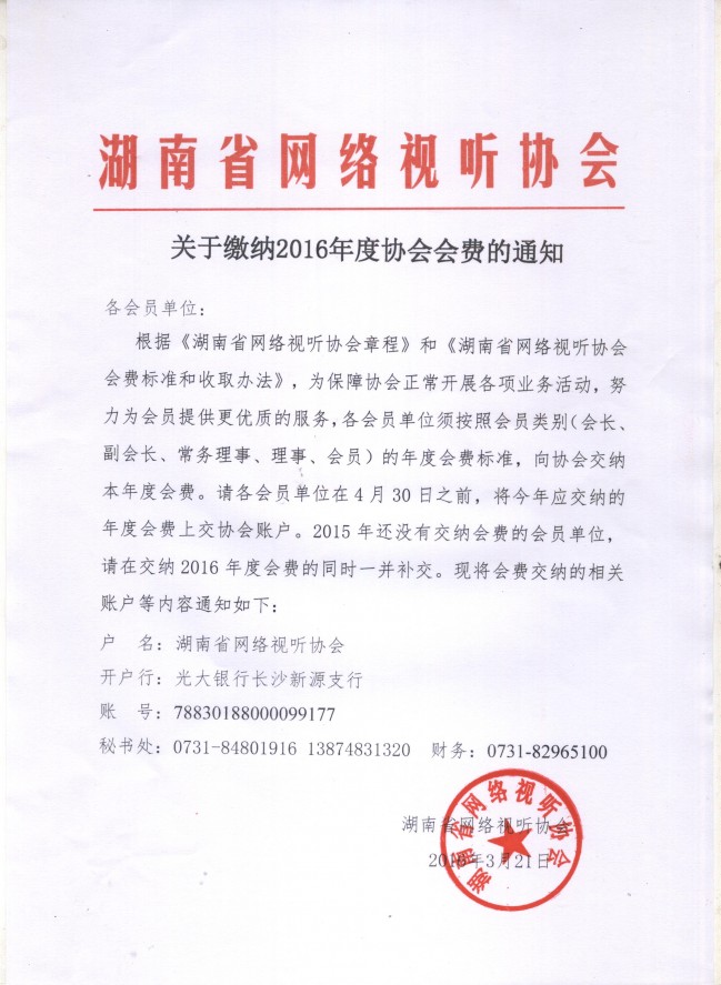 關(guān)于繳納2016年度協(xié)會會費(fèi)的通知