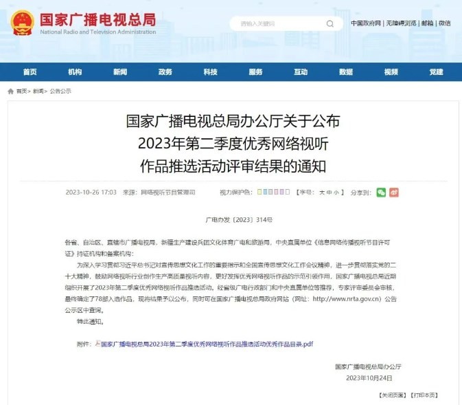 近日,國家廣電總局分別發(fā)布第三屆全國旅游公益廣告優(yōu)秀作品和2023年第二季度優(yōu)秀網(wǎng)絡(luò)視聽作品評審結(jié)果,其中,集團(tuán)(臺)公益廣告《家鄉(xiāng)好物第二季系列作品》,廣播傳媒中心公益廣告《文明旅游大賽》《“坐”著登山不再是夢》獲評“第三屆全國旅游公益廣告優(yōu)秀作品”。芒果TV網(wǎng)絡(luò)紀(jì)錄片《于青山綠水間》、網(wǎng)絡(luò)綜藝節(jié)目《聲生不息·寶島季》《爸爸當(dāng)家2》、網(wǎng)絡(luò)微短劇《婚事》,廣播傳媒中心網(wǎng)絡(luò)音頻節(jié)目《書湘新青年—郭沛文和他的“長沙宇宙”》《長沙夜歸人》共6部作品獲評“2023年第二季度優(yōu)秀網(wǎng)絡(luò)視聽作品推選活動優(yōu)秀作品”。