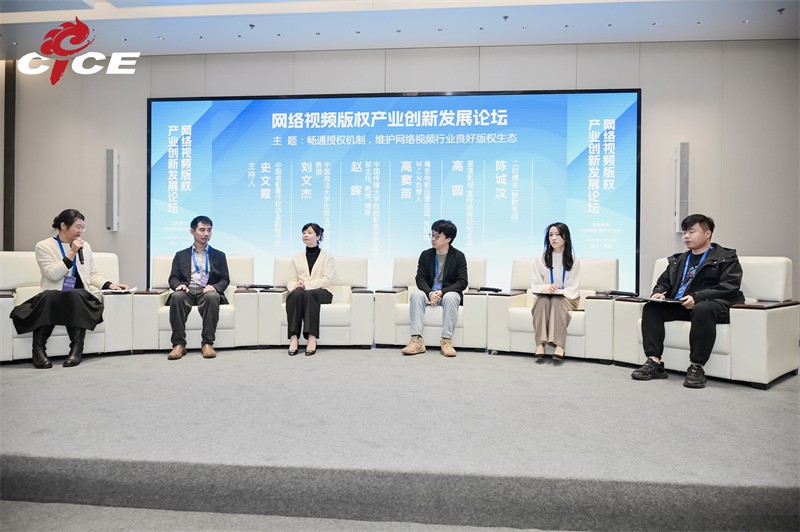 圓桌論壇環(huán)節(jié),中國傳媒大學(xué)戲劇影視學(xué)院基礎(chǔ)部主任教授、博士生導(dǎo)師兼中國電視劇制作產(chǎn)業(yè)協(xié)會(huì)短視頻工作委員會(huì)秘書長、北京電視藝術(shù)家協(xié)會(huì)短視頻專委會(huì)會(huì)長趙暉,中國政法大學(xué)比較法學(xué)研究院教授劉文杰,星蓮影視營銷宣傳商務(wù)總監(jiān)高圓,“默默有聞”賬號的創(chuàng)作者陳城汶,廣州有好戲網(wǎng)絡(luò)科技有限公司負(fù)責(zé)人高竇苗在中國電影著作權(quán)協(xié)會(huì)副秘書長史文霞主持下,圍繞《暢通授權(quán)機(jī)制,強(qiáng)化共建共治共享版權(quán)生態(tài)》這一主題,各抒真知灼見。