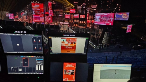 為了圓滿完成本次湖南衛(wèi)視與京東共同推進(jìn)的采銷直播間6小時(shí)跨年大直播任務(wù),隨幻科技協(xié)助整體打造了直播間的空間場(chǎng)景,并將隨幻P2pro虛擬直播工作站和隨幻AR動(dòng)捕直播工作站兩套系統(tǒng)部署在了晚會(huì)直播現(xiàn)場(chǎng),隨幻虛擬直播工作站中的EFP現(xiàn)場(chǎng)導(dǎo)播模式與MR數(shù)字人直播模式共同發(fā)揮強(qiáng)大功能,讓京東的虛擬IP形象小狗 JOY活靈活現(xiàn)地現(xiàn)身在了跨年直播間中,并在整場(chǎng)跨年直播中與真實(shí)主播互動(dòng)配合,給觀看跨年晚會(huì)和線上直播的觀眾共同帶來(lái)了沉浸式的試聽體驗(yàn)。