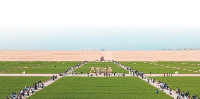 百畝麥田景觀廣場(chǎng),綠麥如茵,人流如織。