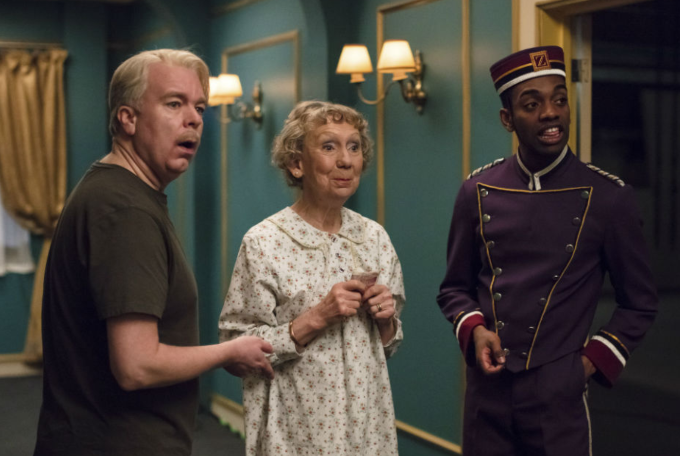 第二個故事發(fā)生在恐怖真人秀節(jié)目拍攝現(xiàn)場,觀眾席被設(shè)計(jì)成獨(dú)立隔間的小黑屋,透過一扇小窗窺看表演區(qū)域,既模擬“觀看拍攝監(jiān)視器”,又在黑暗中渲染虛實(shí)難辨的氛圍。史蒂夫和里斯盛贊這是拍案驚奇的劇場設(shè)計(jì),他們在觀看過程中興奮地湊近窺視窗,又幾次被驟然變化的燈光和聲效嚇得縮回身體。從“小黑屋”出來時,兩人且驚且喜,他們興奮地分享:“我們居然被自己寫的故事給嚇到了!這就是我們最愛的‘有趣的驚嚇’。”其實(shí),劇場版并沒有復(fù)制原劇,在最后“翻轉(zhuǎn)”的環(huán)節(jié)作了改寫,毫無職業(yè)底限的制片人的下場,從超自然力的“天譴”改編成具有反諷意味的攝制組小人物調(diào)戲制作人,以彼之道還施彼身。里斯說:“我沒有恭維的意思,但我喜歡這個改編的中文版超過我們原來的故事。后半部分意外接二連三的劇情是縝密的,盡管我不懂中文,可是通過角色在環(huán)境里的行動,我全看明白了。這個改編讓劇中的小人物具有了更強(qiáng)大的喜劇力量。”