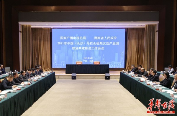 (4月24日下午,2021年中國(長沙)馬欄山視頻文創(chuàng)產(chǎn)業(yè)園部省共建推進工作會議在長沙召開。)
