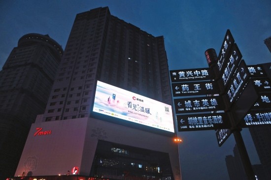 (10月28日,長沙街頭,晨視頻戶外廣告點(diǎn)綴城市夜色。圖/記者張?jiān)品澹?/font>