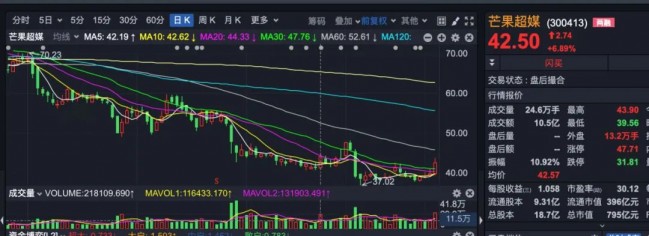 當(dāng)日,受益于“元宇宙”光環(huán),芒果超媒以大漲6.89%收盤。