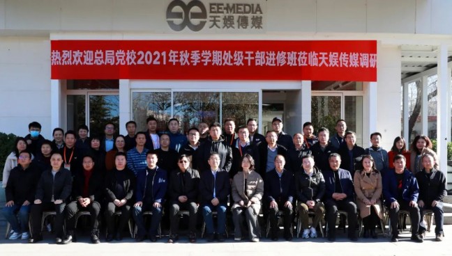 11月26日上午,廣電總局黨校2021年秋季學(xué)期處級干部進(jìn)修班赴天娛傳媒北京公司考察調(diào)研并座談。集團(tuán)公司(臺)黨委委員、副總經(jīng)理、副臺長馮錦出席。芒果超媒、芒果TV、天娛傳媒有關(guān)負(fù)責(zé)人參加座談。