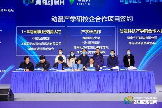 活動(dòng)現(xiàn)場(chǎng),湖南省動(dòng)漫游戲協(xié)會(huì)成立了動(dòng)漫行業(yè)專(zhuān)家顧問(wèn)委員會(huì),來(lái)自全國(guó)各地的15位動(dòng)漫名家、協(xié)會(huì)會(huì)長(zhǎng)、高校名師現(xiàn)場(chǎng)進(jìn)行授聘儀式,將共同為湖南動(dòng)漫行業(yè)把脈獻(xiàn)計(jì),每年發(fā)布行業(yè)創(chuàng)新成果和新課題研究。《我叫方小鍋》動(dòng)漫IP數(shù)字藝術(shù)衍生開(kāi)發(fā)、太空題材3D動(dòng)畫(huà)節(jié)目《宇宙漫游記》、長(zhǎng)征系列動(dòng)畫(huà)創(chuàng)作、安化黑茶文旅主題IP、《秦嶺四寶之天地之靈》電視動(dòng)畫(huà)制作等13個(gè)項(xiàng)目現(xiàn)場(chǎng)簽約。
