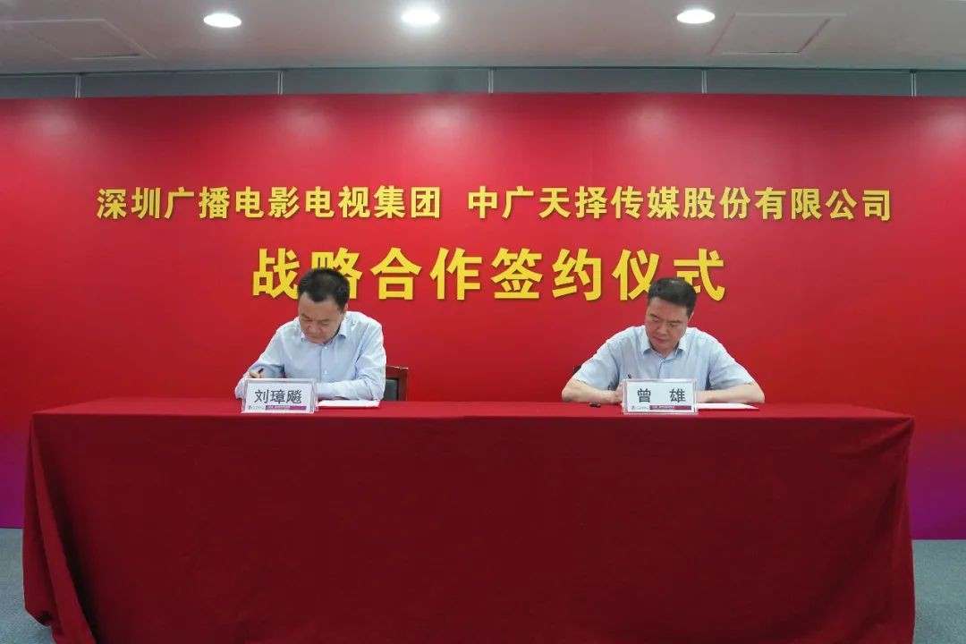 7月12日,深圳廣播電影電視集團與中廣天擇傳媒股份有限公司在深圳廣電集團大廈舉行戰(zhàn)略合作簽約儀式。