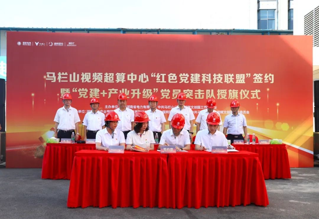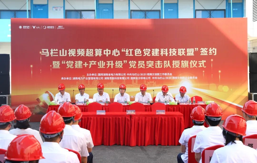 8月15日下午,馬欄山視頻超算中心“紅色黨建科技聯(lián)盟”簽約暨“黨建+產(chǎn)業(yè)升級”黨員突擊隊授旗儀式在馬欄山視頻超算中心建設(shè)現(xiàn)場舉行。國網(wǎng)湖南省電力有限公司黨委委員、副總經(jīng)理李榮,馬欄山視頻文創(chuàng)園黨工委書記鄒犇淼,國網(wǎng)長沙供電公司黨委書記、副總經(jīng)理秦兵,國網(wǎng)湖南省電力有限公司總法律顧問、產(chǎn)業(yè)管理公司執(zhí)行董事沈志斌,馬欄山視頻超算中心承建單位有關(guān)領(lǐng)導(dǎo)、園區(qū)重點項目簽約代表參加活動。