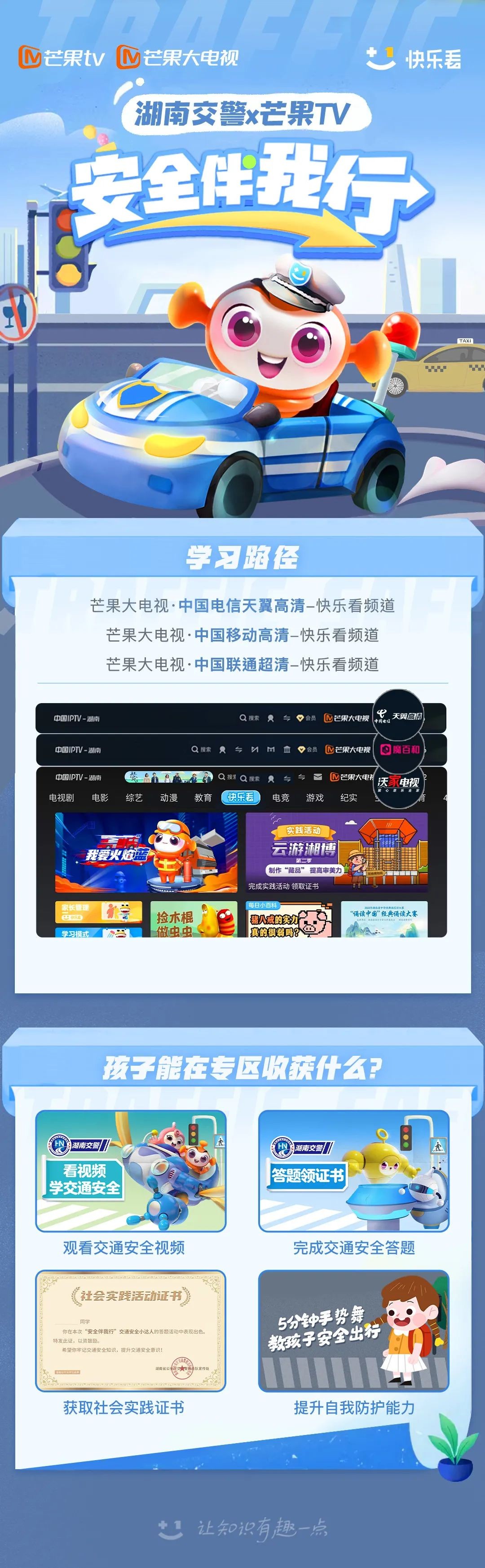 一站式“從看到學” | 芒果大電視快樂看頻道“安全伴我行”交通安全學習專區(qū)上線啦!