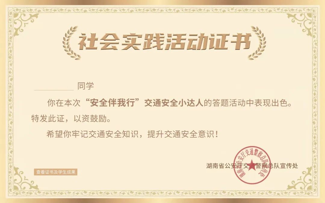 孩子們通過“安全伴我行”交通安全學習專區(qū)觀看交通安全視頻,還可完成交通安全答題,進一步規(guī)范交通安全行為,提升交通安全自我防護能力,并能獲取社會實踐活動證書。