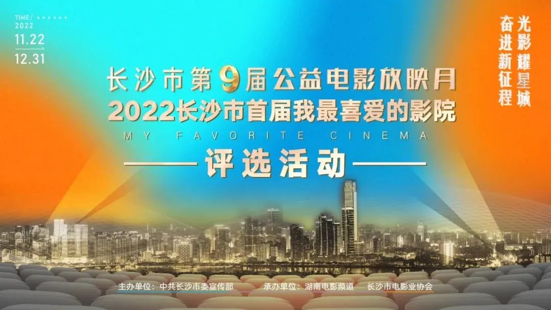 “長沙市首屆我最喜愛的影院評選活動” 是“奮進新征程 光影耀星城”長沙市第九屆公益電影放映月主體活動之一。 本次評選活動由中共長沙市委宣傳部主辦,湖南電影頻道和長沙市電影業(yè)協(xié)會承辦?;顒又饕锌措娪啊垭娪暗挠^眾為自己心宜的影院投票,豐富影迷觀眾的新體驗,投票同時有機會獲得免費觀影券。