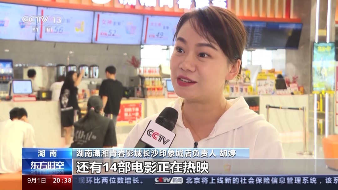 瀟湘青春影城長沙印象城店負(fù)責(zé)人 胡婷:在暑期檔的尾聲的話,還有14部電影正在熱映,每天接待的觀影人次將近4000人,我們的排片日均也達(dá)到了40場。