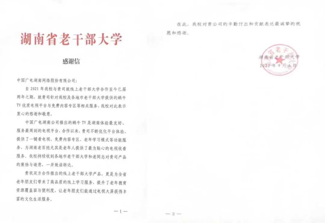9月6日,中廣湖南收到湖南省老干部大學(xué)發(fā)來的感謝信。