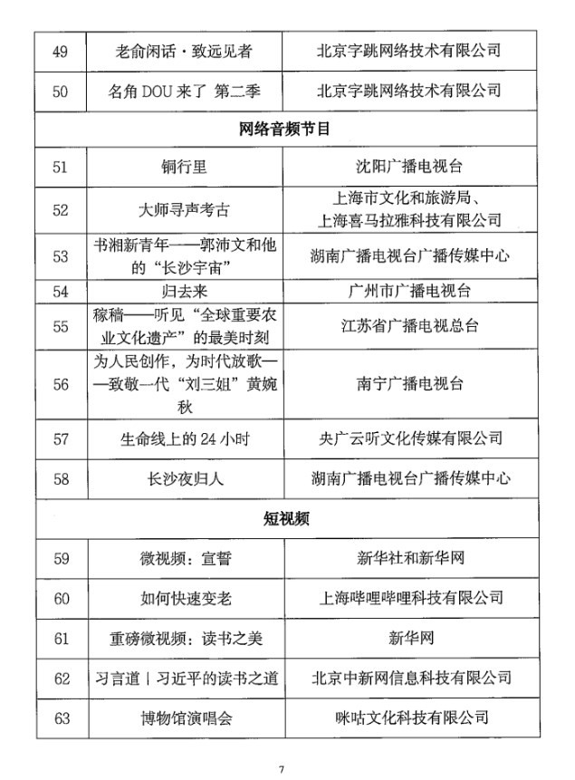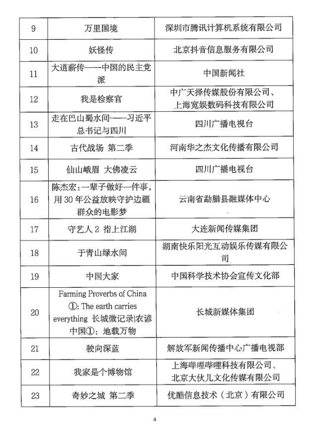 第二季度優(yōu)秀網(wǎng)絡(luò)視聽作品推選活動優(yōu)秀作品目錄
