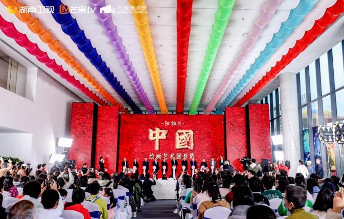 張華立在致辭中向?yàn)椤吨袊防L畫藝術(shù)展貢獻(xiàn)專業(yè)智慧和創(chuàng)新勇氣的策展人,以及所有做出努力的籌展人員表達(dá)感謝。他表示,《中國》繪畫藝術(shù)展既是年輕人喜歡的彩蛋,也是獨(dú)立藝術(shù)展,在長視頻領(lǐng)域?qū)俚谝淮?。這是一次跨界融合的努力探索。《中國》系列紀(jì)錄片歷經(jīng)八年,全景呈現(xiàn)中國數(shù)千年歷史進(jìn)程,第三季用“繪畫+CG”的手段,講述中國神話和上古三代,在海內(nèi)外獲得廣泛好評。紀(jì)錄片《中國》以及繪畫藝術(shù)展,是湖南廣電傳承中華優(yōu)秀傳統(tǒng)文化、推進(jìn)文化和科技融合的一份實(shí)踐答卷。這是一場青春蓬勃的創(chuàng)作實(shí)驗(yàn)。183位優(yōu)秀青年畫家用200多天、3000多個(gè)小時(shí)創(chuàng)制了近千幅畫作,本次畫展展出了其中的443幅作品。遨游于中華文明長河的“沉浸式”創(chuàng)作體驗(yàn),必將為青年畫家的未來藝術(shù)創(chuàng)作積攢新的能量。這是一份送給未來的真誠禮物?!吨袊防L畫藝術(shù)展每周六將向中小學(xué)生免費(fèi)開放。湖南廣電將依托芒果的品牌影響力,努力為當(dāng)代的美術(shù)教育和美學(xué)教育發(fā)揮積極作用。