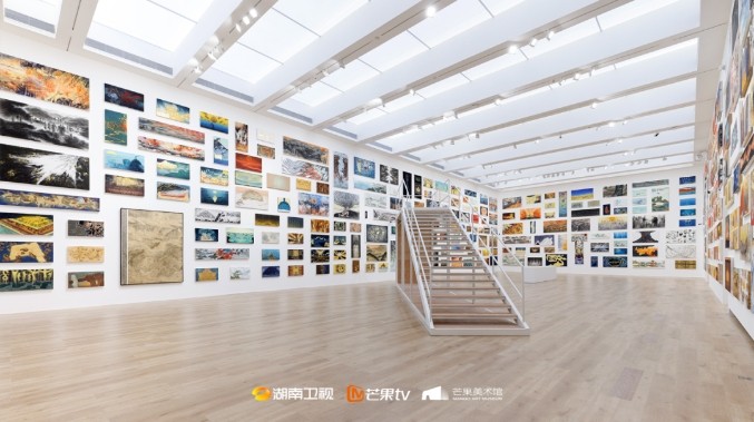 其中,有來自《中國》第三季的作品原件,帶著靈動(dòng)的筆觸、豐富的肌理,鋪滿660平米的主展廳,360°環(huán)繞,全景式震撼,形成視覺沖擊力超強(qiáng)的作品海洋;直徑9米、高5米的光影藝術(shù)裝置,除了表現(xiàn)畫作的運(yùn)動(dòng)性外,也帶來聲影結(jié)合的沉浸式體驗(yàn);更有芒果5G實(shí)驗(yàn)室的AR打卡觀展互動(dòng),以及VR立體繪畫、AI繪畫模型等,開啟全新的看畫維度、觀展體驗(yàn)。