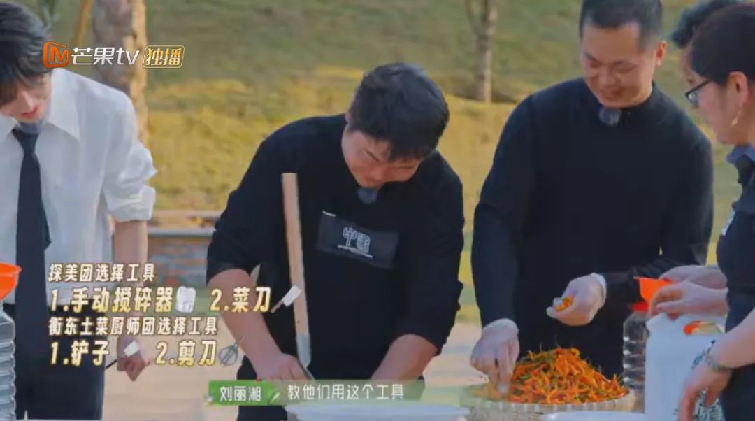 這一集的開(kāi)場(chǎng) 還是由我們的“村長(zhǎng)”李銳 帶領(lǐng)石凱、黃文錦的探美團(tuán) 加上本集的探美團(tuán)外援曹恩齊 乘著竹筏而來(lái) 盡管是冬日 但山清水秀間仍是暖意融融 這里便是流經(jīng)衡東的洣水 兩岸荷花竹林,實(shí)在是百里畫(huà)廊 邊欣賞風(fēng)景,邊做小游戲、品當(dāng)?shù)夭椟c(diǎn) 這才是家鄉(xiāng)愜意的生活 下了竹筏 便是等候在這里的本集美好接待員 “二姐”羅予彤 來(lái)到號(hào)稱“中國(guó)廚師之鄉(xiāng)”的衡東 第一站便是直奔餐桌 一起品嘗以鮮、辣、美、便為特點(diǎn)的衡東菜! 土頭碗、石灣脆肚、楊橋麩子肉 真塘魚(yú)、衡東棋子肉…… 每道菜都讓人口水直流啊 黃貢椒,是衡東菜“辣的靈魂” 邊看大廚現(xiàn)場(chǎng)講解、炒菜 探美團(tuán)也紛紛開(kāi)始了生吃辣椒挑戰(zhàn) 分組競(jìng)賽環(huán)節(jié) 探美團(tuán)需要在三十分鐘內(nèi) 分別做出兩道帶有衡東特色的家常菜 到底是風(fēng)風(fēng)火火的石凱、黃文錦組獲勝 還是主打有條不紊的 曹恩齊、羅予彤組更勝一籌? 生活豐收,攜手比拼運(yùn)動(dòng)樂(lè)趣