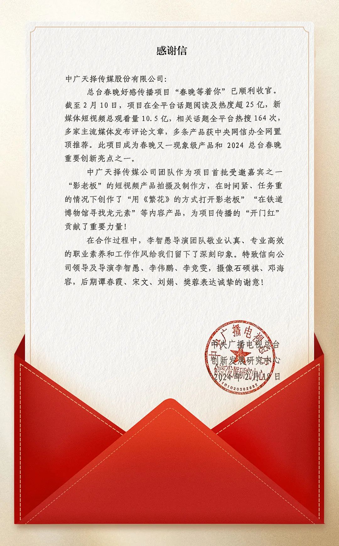 中廣天擇收到了一封
