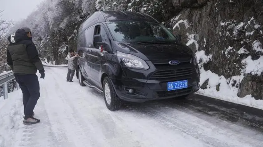 “新春走基層”攝制組在雪峰山錄制山區(qū)老百姓鬧新春的場(chǎng)景時(shí),正值大雪,上山路面結(jié)冰,車行困難,攝制組成員齊心協(xié)力推車上坡。