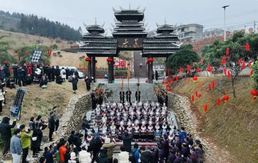 在洪江市最大的侗族移民村,三里村,侗族阿妹擺起攔門酒,歡迎