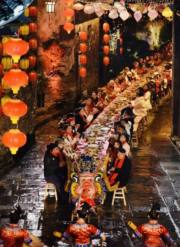 “新春走基層”直播報(bào)道洪江市黔陽古城的長(zhǎng)龍宴,四百多名古城居民同吃團(tuán)年飯,共跳龍年舞,濃濃的年味中蘊(yùn)含著對(duì)家鄉(xiāng)、對(duì)祖國(guó)的歸屬感和自豪感。