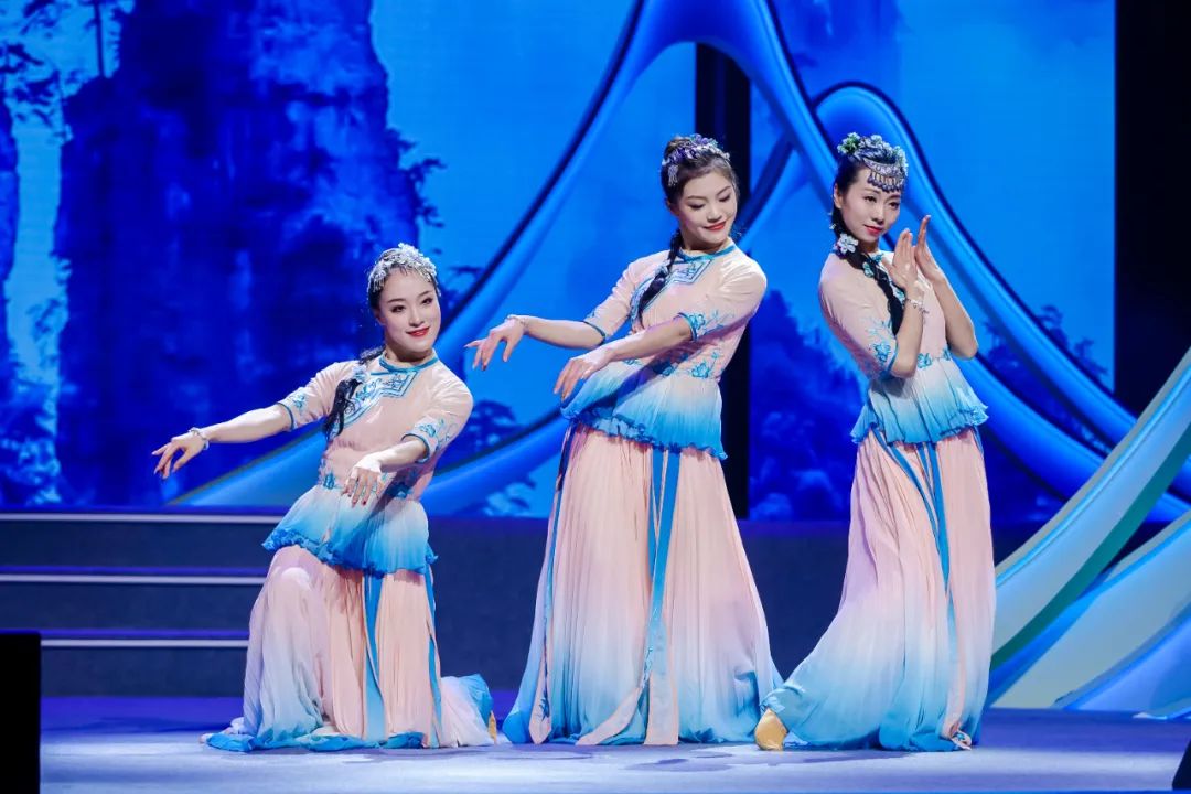 由省歌舞劇院“芳華弦歌”組合表演的歌舞《芙蓉國里盡朝暉》拉開了頒獎(jiǎng)典禮的序幕,為觀眾們呈現(xiàn)了一幅波瀾壯闊的瀟湘大美圖;女子群舞《馬桑樹兒搭燈臺》,讓人從經(jīng)典的桑植民歌中感受到革命先烈浪漫的革命愛情故事,感受信仰里的熱血湖南;由湘西州委宣傳部選送、湖南省民族歌舞團(tuán)表演的《酉水號子》,彰顯了神秘湘西的原生態(tài)力量與激情;由湖南省話劇院青年演員彭元、張笑叢擔(dān)任主演的跨時(shí)空情境音詩畫《江山如此多嬌》,從“江山為何如此多嬌?”的反復(fù)叩問中,汲取文化自信的力量;大型歌舞《奔向明天》展現(xiàn)了湖湘兒女在新征程上團(tuán)結(jié)奮斗、拼搏進(jìn)取的萬丈豪情。