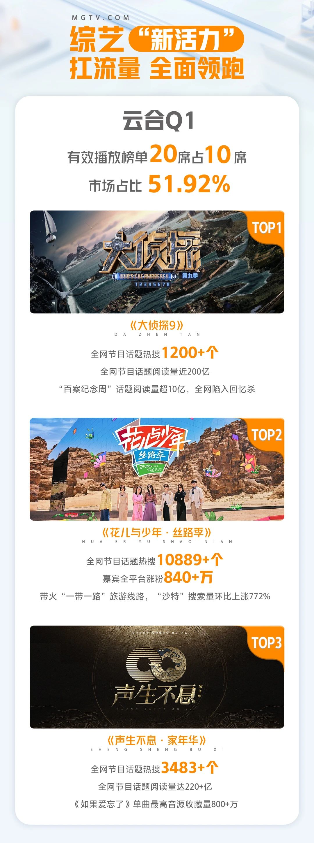 芒果TV:數(shù)讀芒果Q1 | 芒果TV包攬網(wǎng)綜前三,科文融合邁上新臺(tái)階
