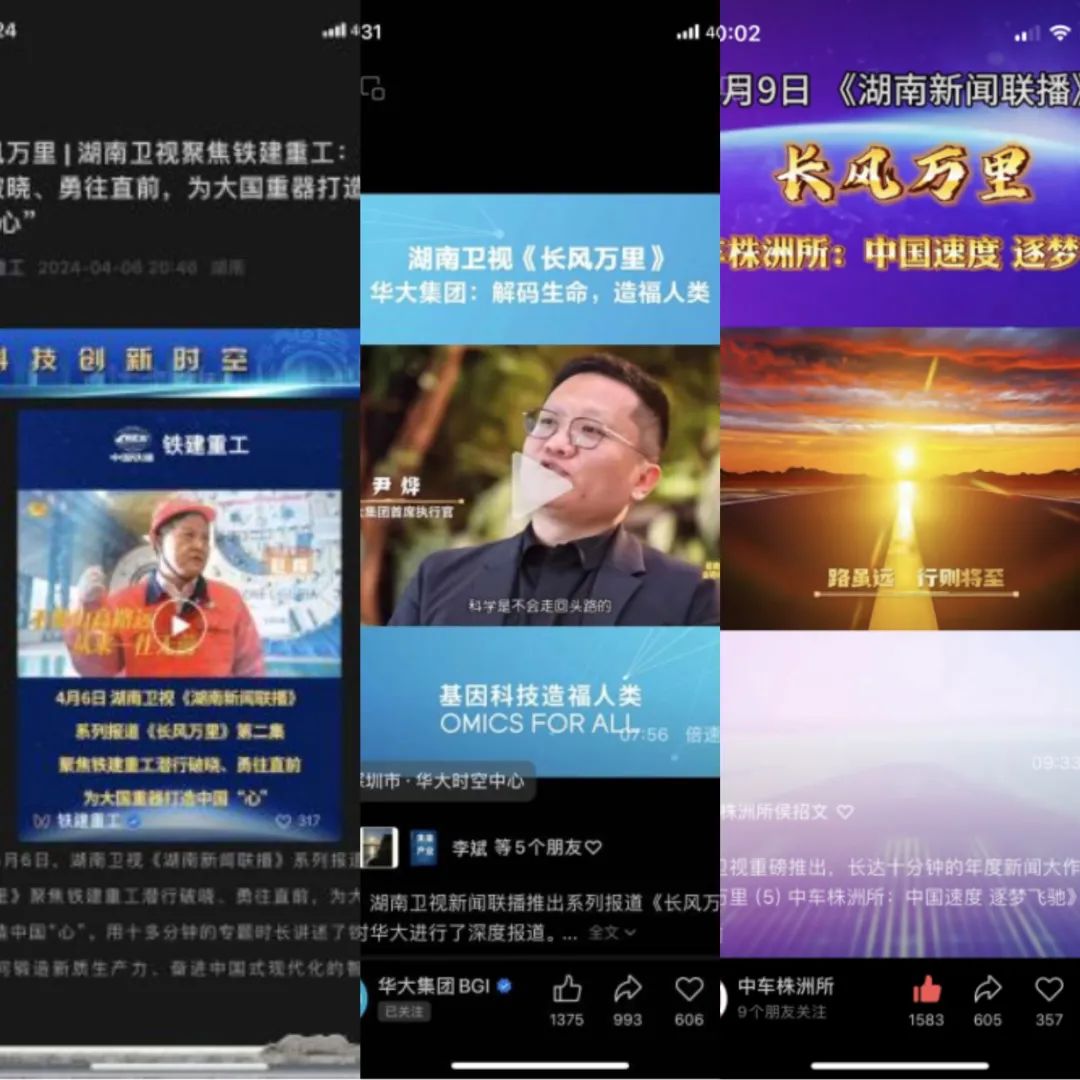 為做好相關(guān)報(bào)道,新聞中心提前布局,于春節(jié)前啟動(dòng)策劃,《湖南新聞聯(lián)播》《午間新聞》抽調(diào)精兵強(qiáng)將,派出八組記者奔赴北京、上海、廣東、江蘇、山東、湖南等地取景拍攝,歷時(shí)兩個(gè)多月完成。節(jié)目播出后,反響熱烈,截止4月15日,全網(wǎng)點(diǎn)擊量超3000萬(wàn)次,在企業(yè)家群體和制造業(yè)領(lǐng)域引發(fā)熱議。中車(chē)株洲所、鐵建重工、三一集團(tuán)、海爾集團(tuán)、江南造船集團(tuán)等企業(yè)紛紛向節(jié)目組發(fā)來(lái)感謝信,對(duì)節(jié)目的宣傳成效表示肯定和感謝。中車(chē)株洲所總工程師馮江華贊揚(yáng)報(bào)道“脈絡(luò)清晰、重點(diǎn)抓得好。”華大集團(tuán)副總裁李斌說(shuō):“在大家討論‘新質(zhì)生產(chǎn)力’如火如荼之際,推出《長(zhǎng)風(fēng)萬(wàn)里》恰到好處。先進(jìn)制造應(yīng)該成為大國(guó)脊梁、新質(zhì)生產(chǎn)力的中堅(jiān)力量。”