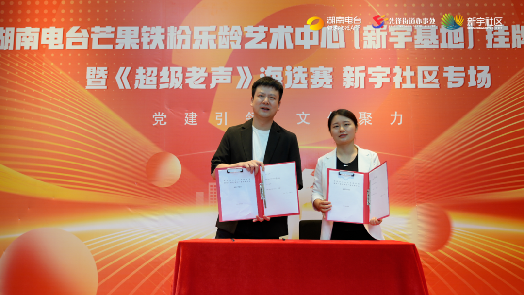 近年來,黨中央、國(guó)務(wù)院高度重視老年教育事業(yè)發(fā)展,為豐富老年人精神文化生活,4月28日,湖南電臺(tái)芒果鐵粉樂齡藝術(shù)中心(新宇基地)掛牌儀式暨《超級(jí)老聲》第二季湖南電臺(tái)唱區(qū)海選賽新宇社區(qū)專場(chǎng)在天心區(qū)先鋒街道新宇社區(qū)啟動(dòng)。