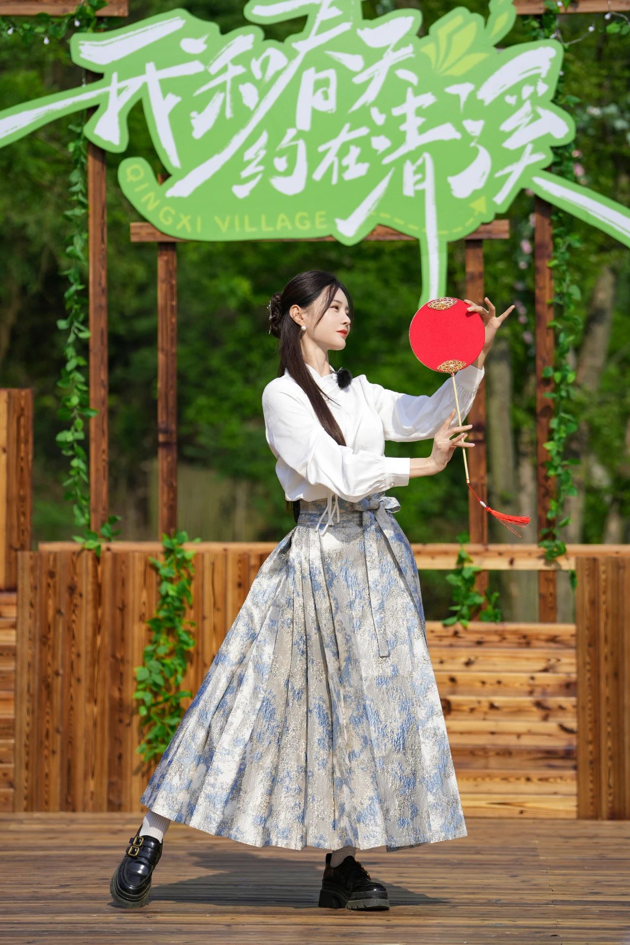 節(jié)目開場,一段充滿激情與澎湃的中國表演舞動生風(fēng),唯美優(yōu)雅的古典扇子舞好似映襯著清溪村儒雅恬靜的美景,青蔥的大學(xué)生合唱團為清溪村獻上了一首《蝴蝶泉邊》,《劉??抽浴泛蛷椩~表演作為傳統(tǒng)戲曲和非遺文化的代表,深受現(xiàn)場觀眾的喜愛… …隨著聯(lián)歡會進入尾聲,《我和春天約在清溪》也即將在大家的歡歌笑語中完美落幕。