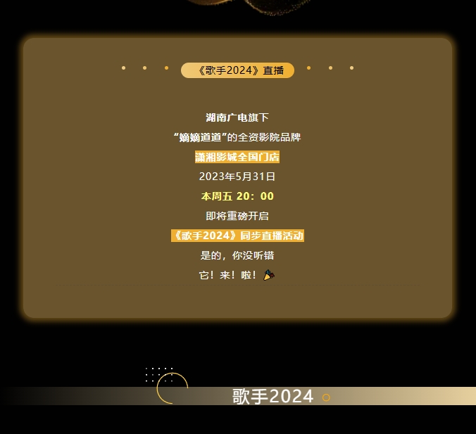 瀟湘國(guó)際影城:湖南廣電旗下瀟湘影城開(kāi)啟《歌手2024》同步直播