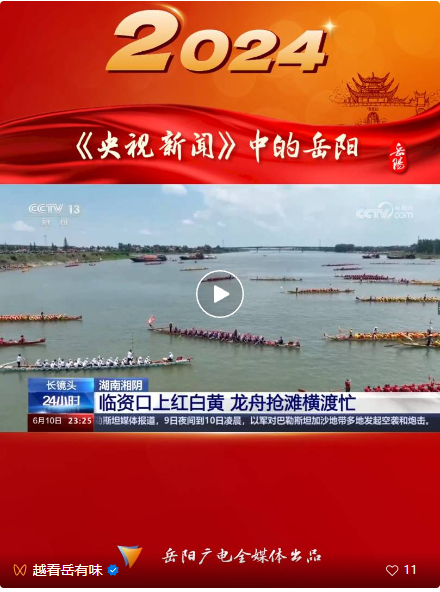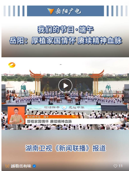 “五月五是端陽,門插艾,香滿堂。呷粽子,撒白糖,龍船下水喜洋洋。”這首汨羅江畔的童謠記錄著汨羅人的端午習俗。有著端午源頭、龍舟故里、詩歌原鄉(xiāng)美譽的汨羅市積極傳承端午文化,在今年我們的節(jié)日端午中,汨羅市、湘陰縣、屈原管理區(qū)等地的端午文化習俗活動火爆出圈,被中央、省市級各媒體轉(zhuǎn)播轉(zhuǎn)載,湖南岳陽端午文化節(jié)會的輿論氛圍被直線拉滿。 從6月4日開始,央視報道組分別進駐汨羅、湘陰、屈原等地,提前踩點、策劃,岳陽市廣播電視臺、汨羅市融媒體、湘陰縣融媒體、屈原管理區(qū)融媒體分別派出骨干記者全力配合協(xié)作,在近一周的宣傳采訪拍攝報道中,先后在央視1套、2套、3套、4套、13套、15套、17套以及央視新聞客戶端等頻道的十二個欄目中播發(fā)各類稿件達40余次,完成5場直播連線,通過央視媒體矩陣整體推介了岳陽豐富多彩的端午文化習俗活動。 其中,6月10日晚,央視《新聞聯(lián)播》分別在《多彩端午活動 傳承家國情懷》、《中國傳統(tǒng)佳節(jié)·端午》兩期新聞節(jié)目中報道了汨羅市龍舟競渡的場景。8號和10號晚的《晚間新聞》再度兩次聚焦汨羅,以賽龍舟包粽子的形式展現(xiàn)了汨羅市多彩的端午文化活動。 與此同時,位于湘陰縣湘江臨資口的龍舟比賽則打破常規(guī),以搶灘登陸的方式亮相央視、衛(wèi)視和經(jīng)視的熒屏,在比賽期間還有江豚為伴,以獨特的內(nèi)容被多家媒體轉(zhuǎn)發(fā)。 而在省內(nèi),湖南廣播電視臺湖南衛(wèi)視《湖南新聞聯(lián)播》、《午間新聞》,湖南經(jīng)視《經(jīng)視新聞》、《經(jīng)視焦點》、《經(jīng)視播報》,湖南都市《都市一時間》等多家省級媒體持續(xù)開展端午文化的宣傳報道推廣活動。在五天時間里,連續(xù)推出涉及岳陽端午文化習俗的系列報道20余條。其中,衛(wèi)視《首發(fā)》欄目以12分鐘的篇幅整體聚焦汨羅的龍舟文化和龍船精神。《湖南新聞聯(lián)播》、《午間新聞》則推出大型人物專題系列報道《文化的田野》,在6月8日首期節(jié)目中重磅介紹了屈原學草根專家劉石林守護屈子祠,研究、傳承、弘揚屈原文化的動人故事。此外,衛(wèi)視、經(jīng)視、都市等多個欄目在端午假期三天時間,不間斷推出相關(guān)報道,為岳陽端午節(jié)的文化和旅游推薦起到了良好的宣傳引導(dǎo)作用。