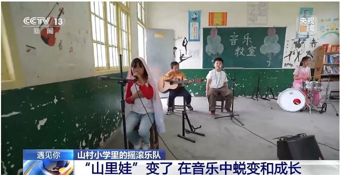 去年9月,文勁選出幾名學生,組建起了一支校園搖滾樂隊,取名“一起”樂隊,希望孩子們可以一起感受音樂帶來的快樂,用音樂點燃夢想。