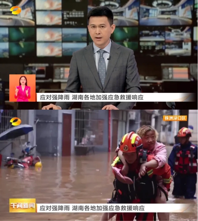 從6月16日開始,《湖南新聞聯(lián)播》推出《湖南啟動(dòng)洪水防御IV級(jí)應(yīng)急響應(yīng)》,每日向社會(huì)發(fā)布相關(guān)情況。播發(fā)《湖南70個(gè)縣市區(qū)出現(xiàn)暴雨 8300余名群眾轉(zhuǎn)移》《應(yīng)對(duì)強(qiáng)降雨 湖南各地加強(qiáng)應(yīng)急救援響應(yīng)》《應(yīng)對(duì)強(qiáng)降雨 湖南各地緊盯重點(diǎn)環(huán)節(jié)加強(qiáng)防守》等消息,對(duì)暴雨區(qū)積極應(yīng)對(duì)汛情、守護(hù)老百姓生命財(cái)產(chǎn)安全的相關(guān)事例進(jìn)行報(bào)道。《午間新聞》組織精干力量,全力投入防汛報(bào)道,推出《迎戰(zhàn)強(qiáng)降水》版塊,每天播出時(shí)長在五分鐘以上,通過精致動(dòng)畫,一覽全省雨量、水位信息,讓廣大群眾對(duì)雨情汛情心中有譜,同時(shí),報(bào)道還廣泛采訪應(yīng)急、水文、氣象部門,權(quán)威發(fā)布防汛動(dòng)態(tài),并聯(lián)動(dòng)全省通聯(lián),匯聚第一手的鮮活防汛救災(zāi)現(xiàn)場,先后播發(fā)稿件《湖南加強(qiáng)巡查值守應(yīng)急叫應(yīng) 及時(shí)救援轉(zhuǎn)移保障群眾生命安全》《疏通城市“毛細(xì)血管” 提升汛期排漬防澇能力》等。