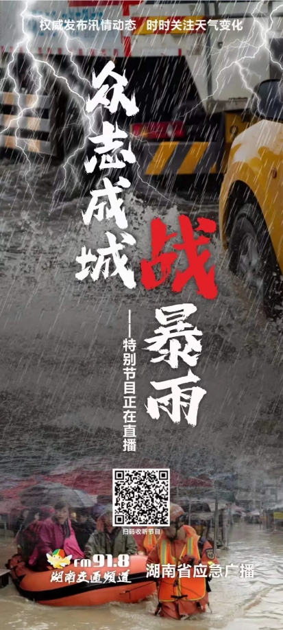 新聞中心《湖南新聞聯(lián)播》《午間新聞》持續(xù)報(bào)道全省汛情動(dòng)態(tài),廣播傳媒中心全面啟動(dòng)應(yīng)急廣播和《村村響大喇叭》,湖南經(jīng)視《經(jīng)視新聞》推出“防汛進(jìn)行時(shí)”特別板塊及新聞特寫,都市風(fēng)芒開啟直播并關(guān)注百姓投訴熱點(diǎn),湖南愛晚開設(shè)專欄《聞“汛”而動(dòng)》等,通過高密度預(yù)警、大時(shí)段報(bào)道和全媒體傳播,及時(shí)發(fā)布湖南雨情汛情,傳遞黨中央和湖南省委省政府的防汛決策部署,講述防汛抗災(zāi)一線的感人故事。