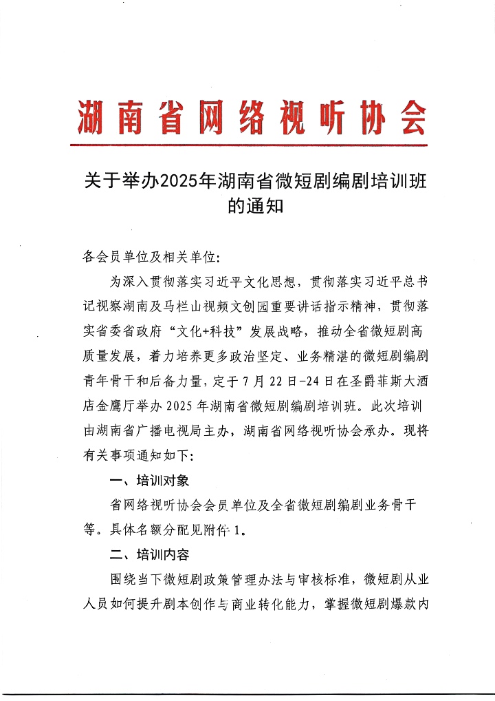 關(guān)于舉辦2025年湖南省微短劇編劇培訓(xùn)班的通知